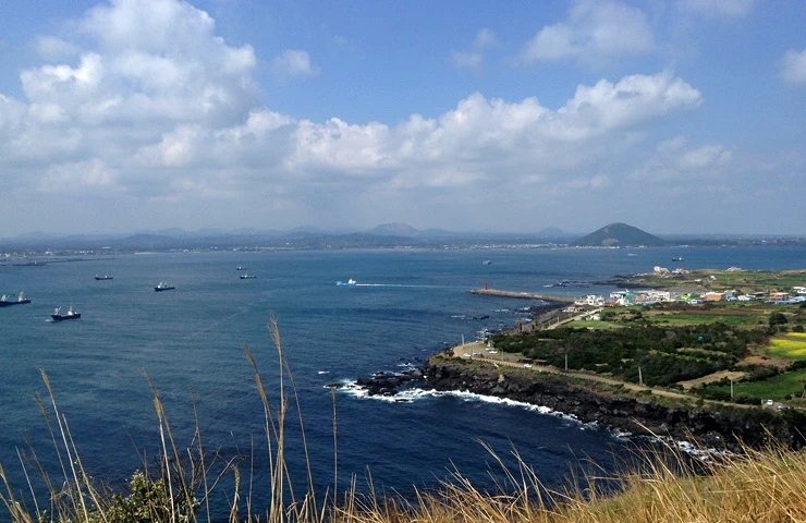 해발 180m인 성산 일출봉은 약 5,000년 전 제주도 수많은 분화구 중에서는 드물게 바닷속에서 수중폭발한 화산체이다. 용암이 물에 섞일 때 일어나는 폭발로 용암은 고운 화산재로 부서져 분화구 둘레에 원뿔형으로 쌓여 있다. 원래는 화산섬이었지만 신양해수욕장 쪽 땅과 섬 사이에 모래와 자갈이 쌓여 육지와 연결이 된 것이다. 일출봉 정상에는 지름 600m, 바닥면의 높이 해발 90m에 면적이 214,400㎡(성산일출봉 분화구의 면적)나 되는 분화구가 자리한다. 이곳에서 이장호 감독의 영화 '공포의 외인구단'의 한 장면이 촬영되기도 했다. 농사를 짓기도 했는데 지금은 억새밭을 이루며 우도가 손에 잡힐 듯 보인다. 예로부터 이곳 성산일출봉 정상에서 바라보는 일출광경은 영주10경(제주의 경승지) 중에서 으뜸이라 하였다. 넘실대는 푸른 바다 저편 수평선에서 이글거리며 솟아오르는 일출은 온 바다를 물들이고 보는 이의 마음까지도 붙잡아 놓으며 보는 이로 하여금 저절로 감탄케 한다. 지방기념물로 관리하다 2000년 7월 19일 천연기념물로 지정된 곳이다. 자료출처 : 대한민국 구석구석(http://korean.visitkorea.or.kr) 거리:4.69km, 차량 9분
